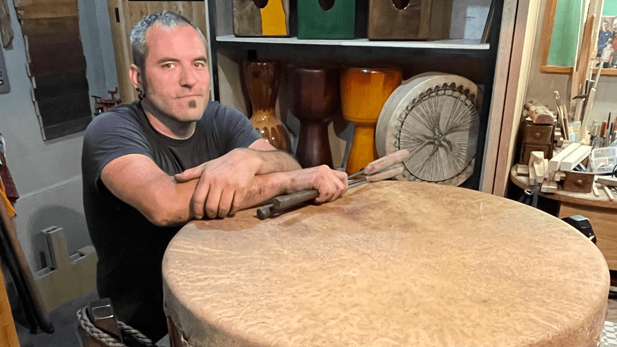 Weber builds a variety of drums from around the world: djembes from Africa, cajóns from South America, traditional hand drums, and the large powwow drums used to lead traditional ceremonies in Canada and North America.