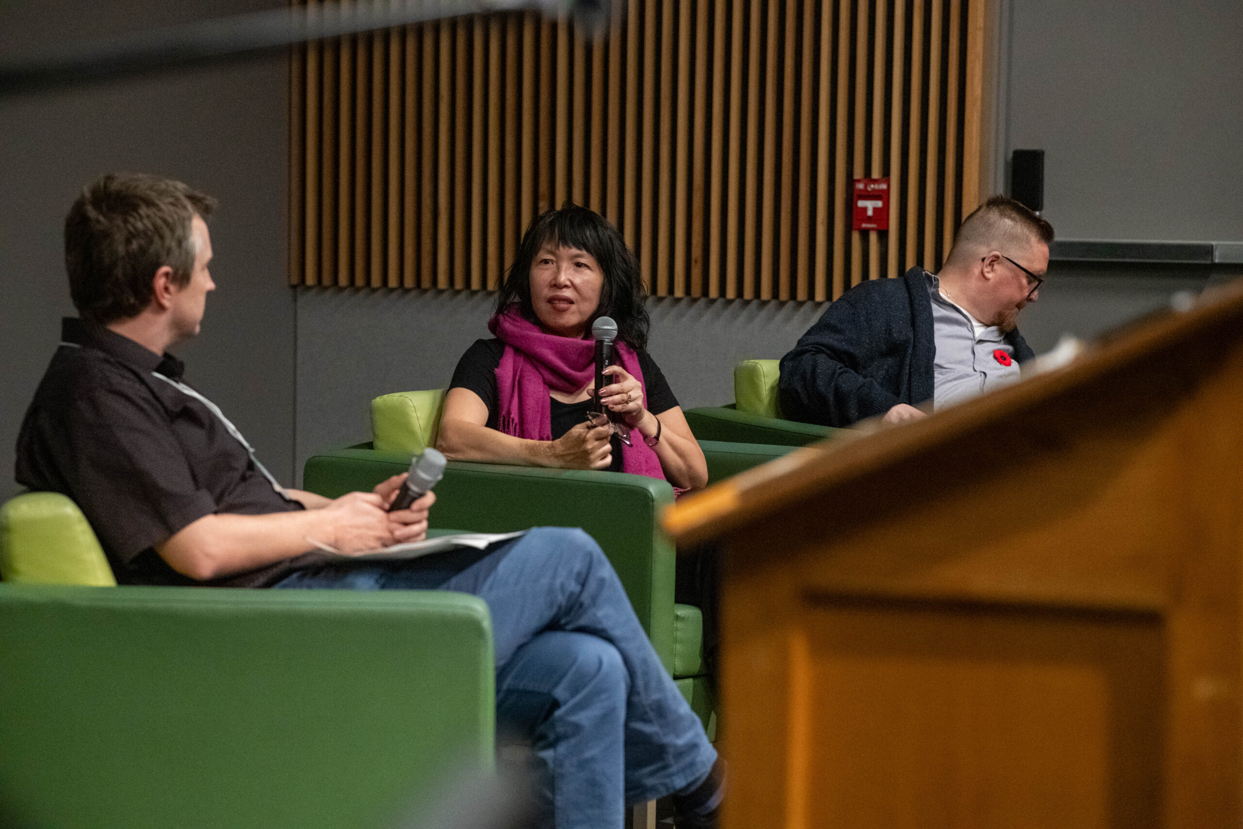 Two themes carried the Festival, “Silence” and “Sound.” With one panel on each theme, both included four exclusive readings on the theme from the participating authors — written exclusively for the event — and were tied up by a conversational Q&A, giving audiences a chance to ask questions about them personally, or their writing craft. The “Silence” panel was chaired by Taryn Hubbard, with Joseph Dandurand, Daniela Elza, Jen Sookfong Lee, and Christina Myers taking the stage. Lee chaired the afternoon panel on “Sound,” joined by Kayla Czaga, Taryn Hubbard, Heather Ramsay, and Nick Thran for the Q&A.
